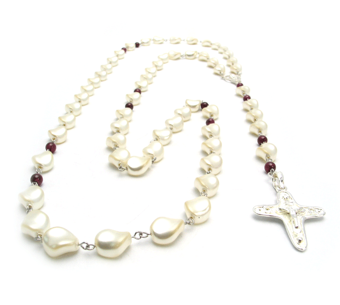정품 스왈로브스키 트위스트 진주, 가넷, 은방석, 은십자가(백금도금), 부재료(백금도금)
