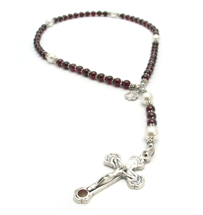 가넷, 정품 스왈로브스키 진주, 금속장식, 성모님패, 십자가(이태리 수입품), 부재료(백금도금)